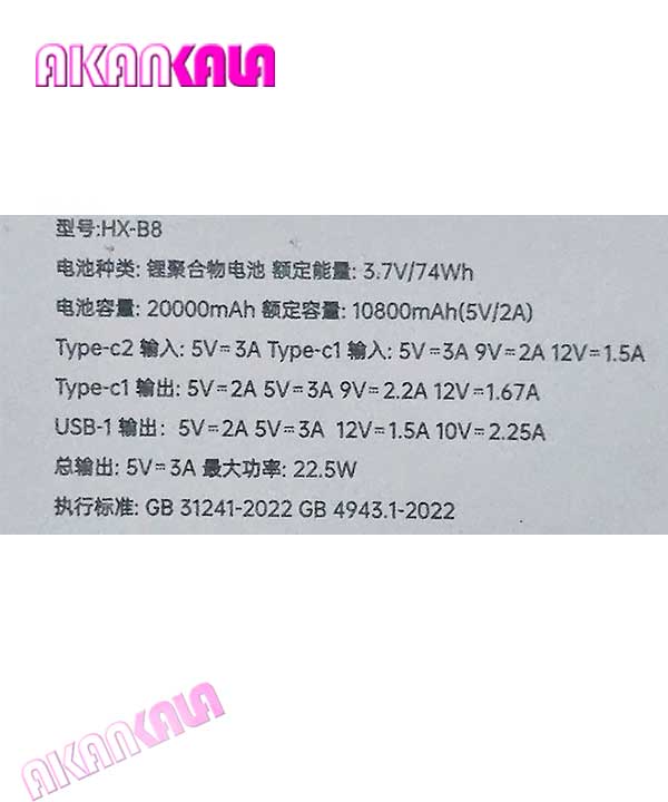 *****بدون پک******** پاوربانک 20000 میلی آمپر 22.5 وات HX-B8